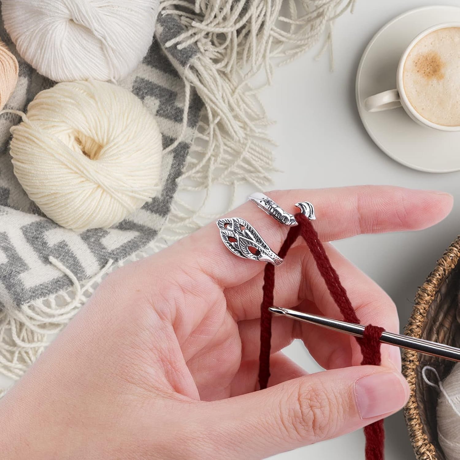 Yolev 3 Pieces Adjustable Knitting Crochet Ring Knitting Accessories Braided Peacock Open Finger Ring Adjustable Braided Ring for Faster Knitting