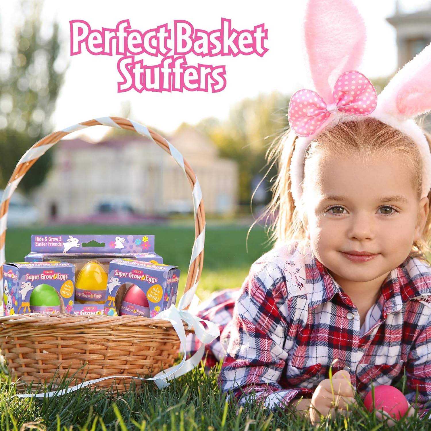Easter Super Grow Eggs 3 Pack- Hatch and Grow for Easter Gifts, Baskets and Egg Hunts - Three Different Pets That Grow 5-6x Size- Bunny, Duck and Chick: Easter Egg Hunts have never been like this. These magical eggs really hatch! Once found, simply place them in water and within 24 hours, they will start to crack. Soon thereafter, within 36-48 hours, will pop out a special growing pet. A Baby Chick, Duck, or Rabbit will delight your young one and make for a very special pet they can treasure year round. Brand New for 2014 and an Amazon.com Exclusive. DIRECTIONS FOR USE: Place Eggs in water. Within 24-36 hours your egg will begin to crack. Each day, replace water. The pet will continue to grow, out of its shell. You may help the pet out, but it will keep growing up to 5-10x its size with or without your help. When the pet hatches, rinse the pet off as it will be slippery, and either play with it, or place it back in clean water and watch it daily continue to grow.