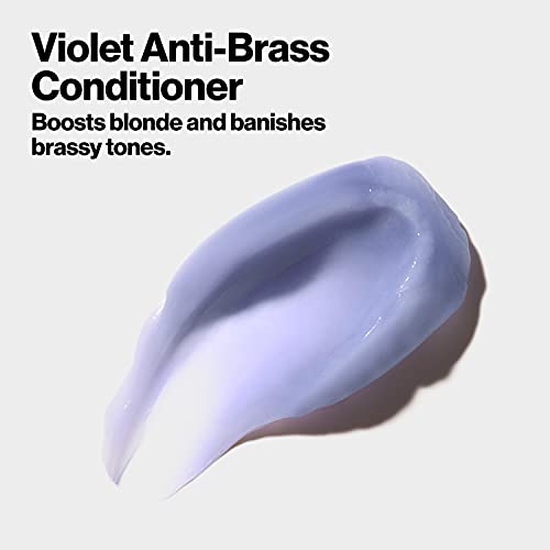 - BOOSTS BLONDE & BANISHES BRASS: Get beautiful blonde without a salon. The violet-pigmented conditioner banishes brassy tones