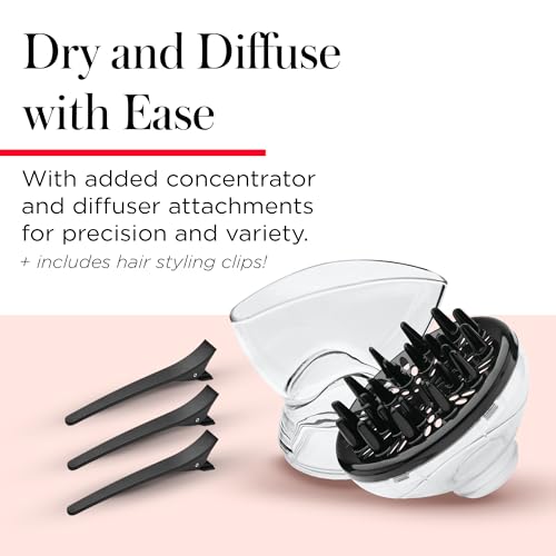 REVLON Infrared Hair Dryer with Diffuser & Concentrator - Ionic Ceramic Blow Dryer for Frizz Control, Shine, Soft Hair & Moisture Protection - 1875W Professional Salon-Quality (White)