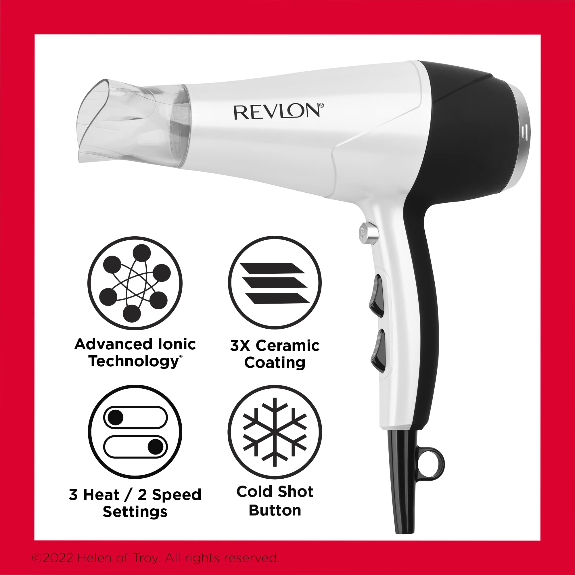 REVLON Volume Booster, Hair Dryer with Curl Enhancing Diffuser | Increase Volume, Decrease Frizz and Damage, Fast Drying, 1875 Watts (White)