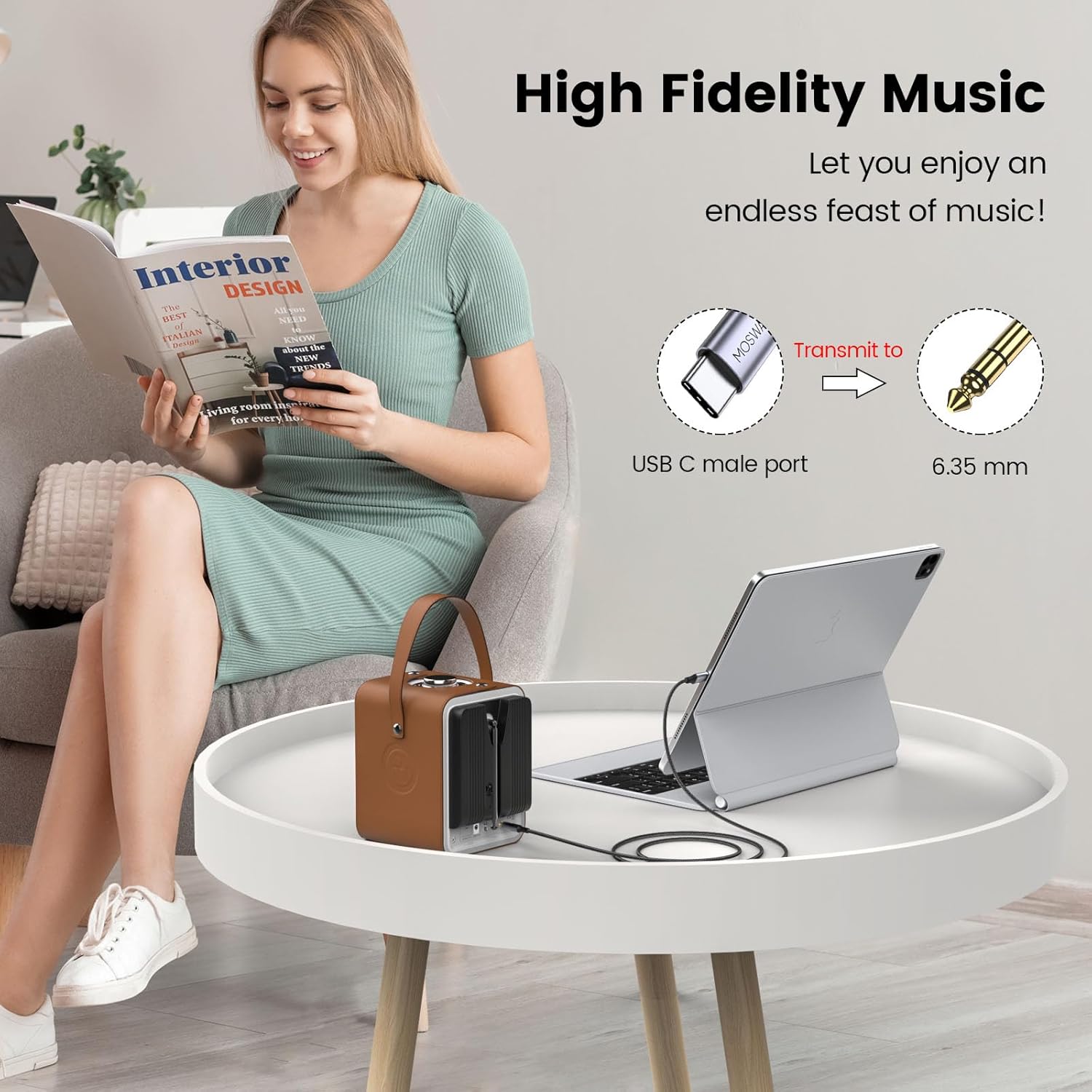 - 【Compatible with】Connects Smartphones, Tablets, iPad Pro or MacBook with USB Type C jack to audio devices with a 6.35mm stereo jack, such as Amplifier, Speaker, Headphones, Home Theater, Mixing Console.