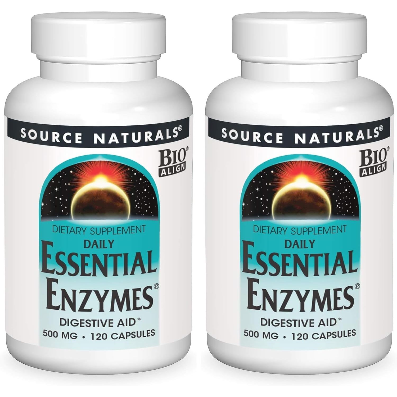 - Source Naturals Essential Enzymes 500mg Bio-Aligned Multiple Enzyme Supplement Herbal Defense for Digestion, Gas, Constipation & Bloating Relief - Supports Immune System - 240 Capsules
